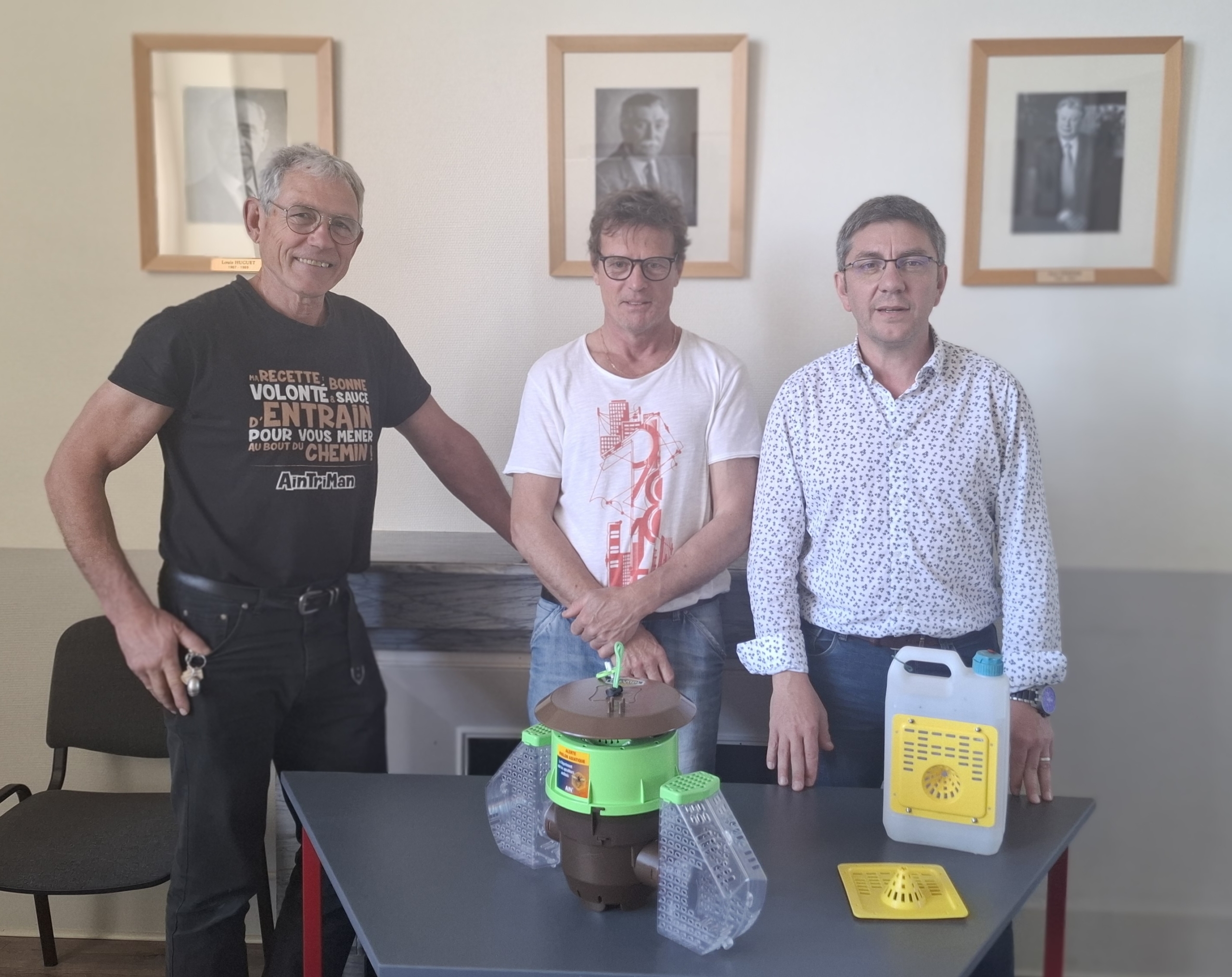 Le Maire, accompagné de Thierry VAN VOORTHUYSEN, Conseiller délégué, a reçu en mairie Franck FALAISE, habitant de la commune, récemment nommé référent frelon asiatique.